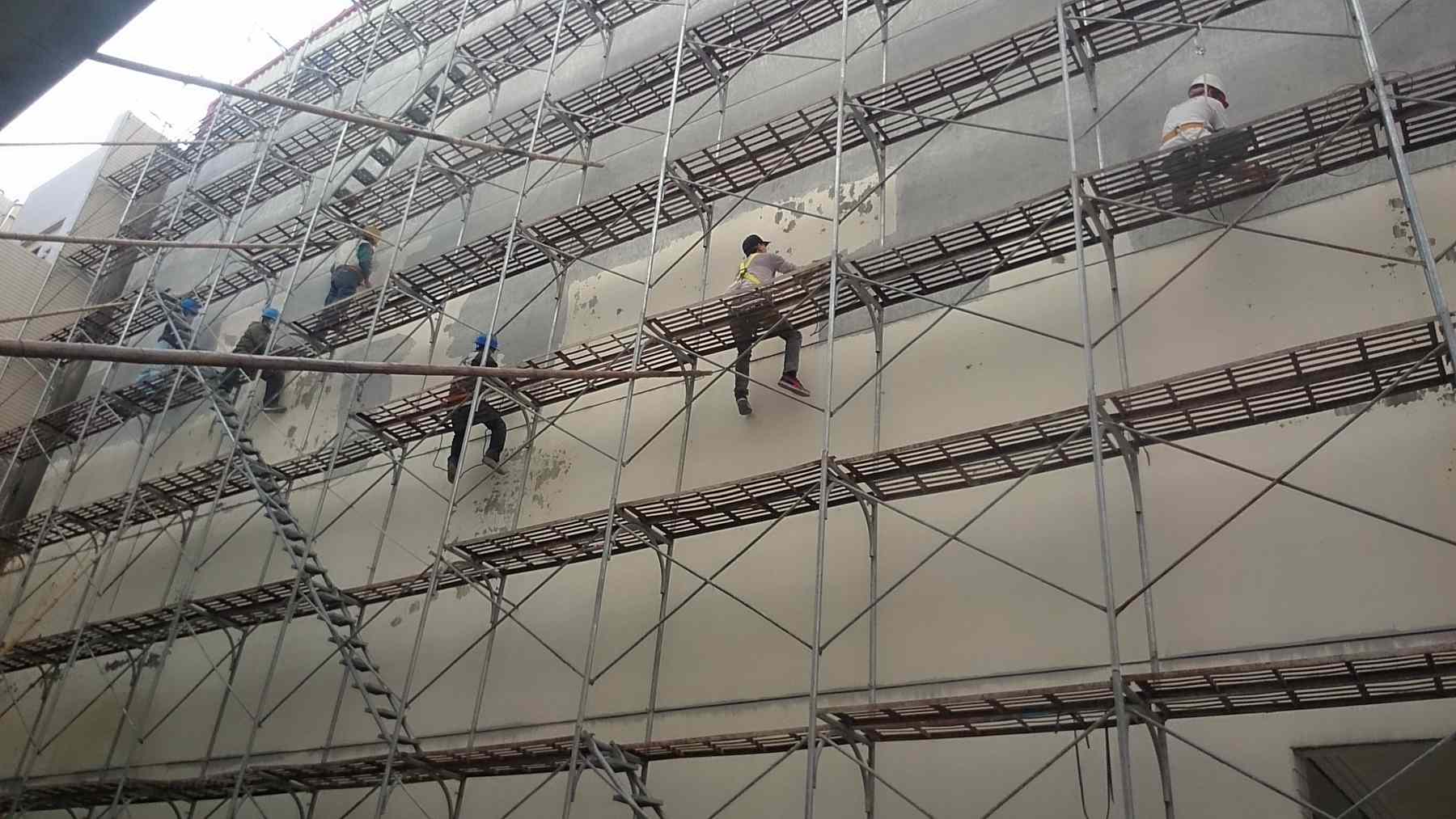 ⑵對抹灰砂漿應分層抹灰,尤其是高層建筑,局部外墻抹灰較厚,這就需要進行分層批灰,每層抹灰厚度不應超過2㎝,如厚度過大,在分層處應設鋼絲網(wǎng);